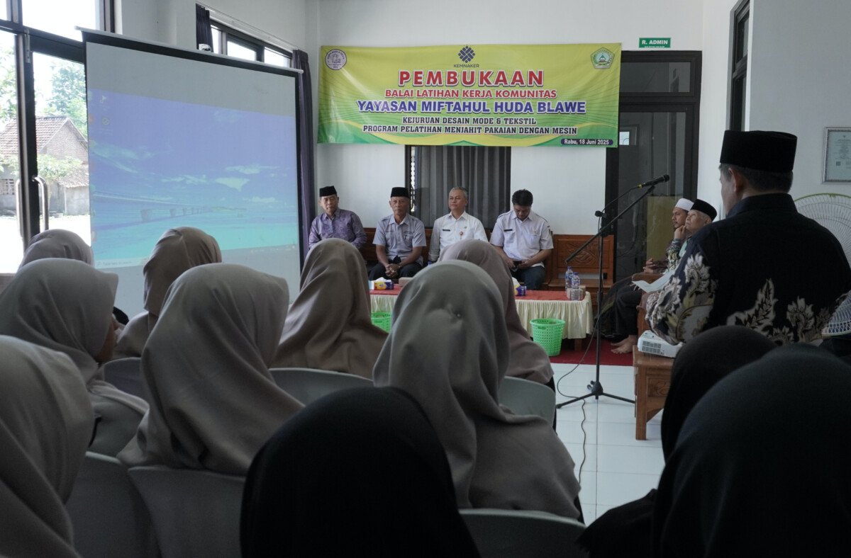 Kediri (25/6). Balai Latihan Kerja Komunitas (BLKK) Miftahul Huda, Kediri, Jawa Timur, bekerja sama dengan Ponpes Wali Barokah, Kota Kediri menghelat pembukaan pelatihan menjahit, pada Rabu (18/6). Acara itu diikuti 20 peserta, dengan total durasi pelatihan 260 jam pelajaran.