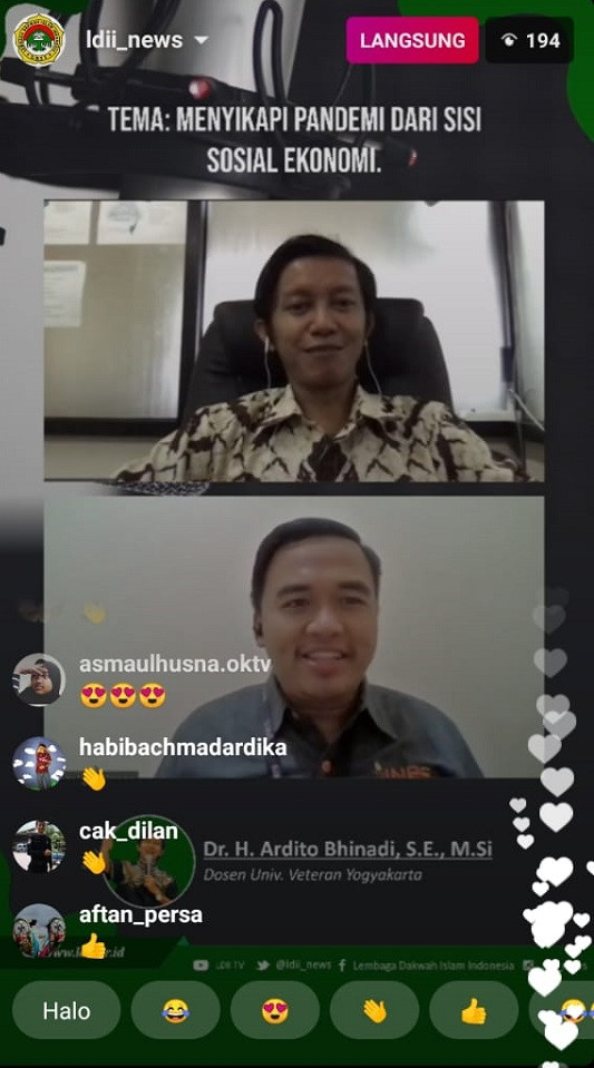 “Sebagai mahluk sosial, manusia memiliki tanggung jawab sosial untuk saling membantu. Ada yang kena PHK, bisnis yang dijalankan macet, ada yang dirumahkan. Maka masyarakat yang mampu dapat membantu masyarakat yang terdampak secara ekonomi,” ujar Dosen Fakultas Ekonomi dan Bisnis UPN Veteran Yogyakarta ini.