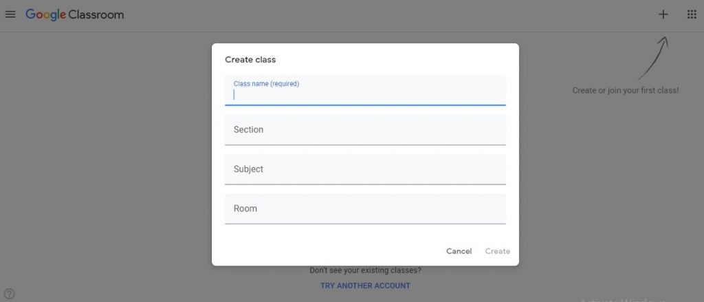 Selanjutnya klik tanda panah untuk bergabung dengan kelas atau membuat kelas.