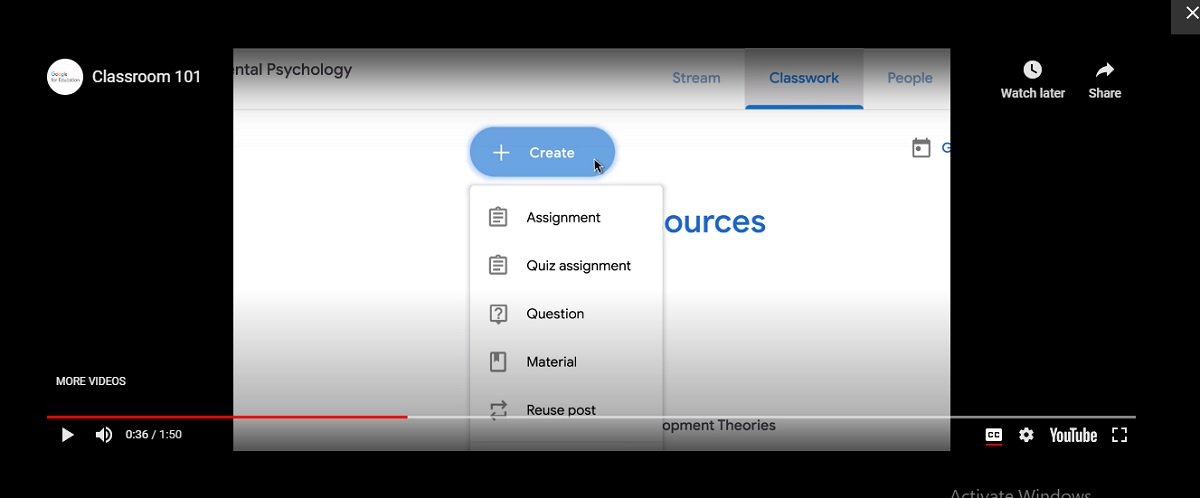 Guru juga dapat memberikan tugas pada kelas dengan  beberapa pilihan seperti membuat tugas dan pertanyaan, gunakan topic untuk mengatur kelas ke dalam modul atau unit. Guru juga dapat melihat jumlah anggota dan siapa saja anggota kelasnya dan diberikan pula halaman penilaian kelas.