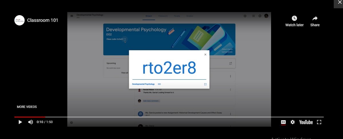 Tampilan kode unik saat gabung kelas